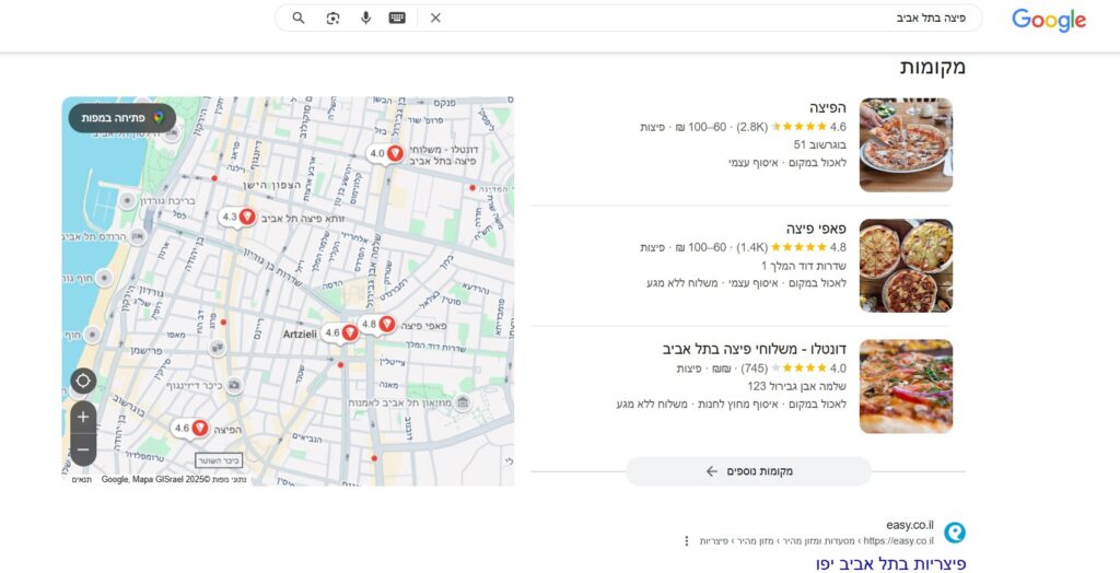 • מיקום מדויק ופעילות בפרופיל יעזרו לכם להופיע בשלישייה הראשונה בתוצאות גוגל מפות (Local Pack).